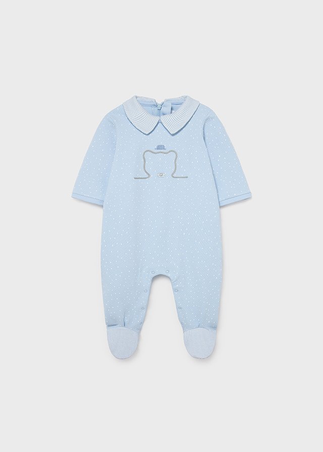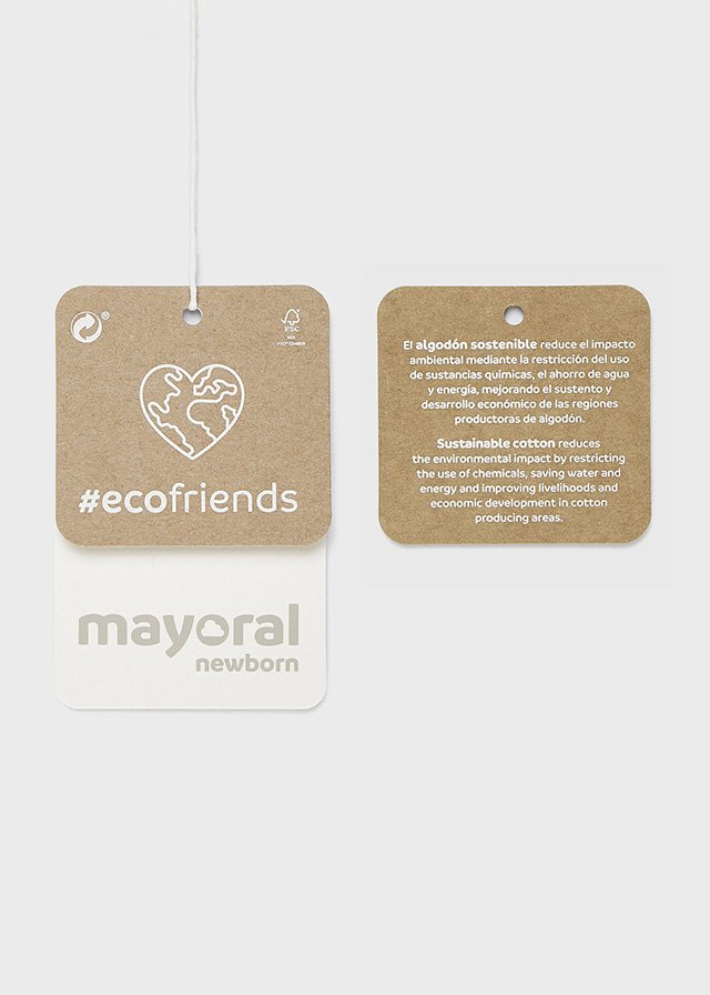 Oblečení ECOFRIENDS, obsahuje udržitelnou bavlnu Babygrow s dlouhým rukávem pro novorozence od 0 do 18 měsíců. Zahrnuje nohy. Košile límec. Zapínání na knoflíky na rozkroku. Zapínání na zip.Doplňkové parametry