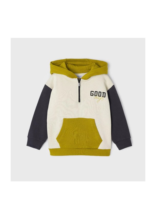 Mikina s dlouhým rukávem pro dívky. Límec s kapucí. Přední, centrální zapínání na zip. Vyrobeno ze 100% bavlněné tkaniny. Elastické spodní manžety pro lepší uchycení.